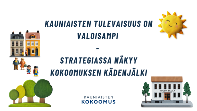 Kauniaisten uusi strategia on hyväksytty. Strategisissa tavoitteissa, läpimurtohankkeissa ja tuloksissa näkyy vahvasti kokoomuksen kädenjälki. Strategia tähtää vetovoimaiseen kaupunkiin, joka kasvaa vastuullisesti ja vahvistaa talouttaan.